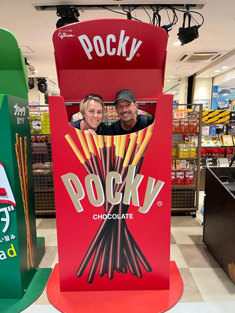 Nach dem Turm sind wir gleich ins erstbeste Restaurant zum Mittagessen. Frittierte Spieße oder Kushikatsu wie der Japaner sagen würde. Danach noch durch den Markt schlendern und am Schluss noch Takoyaki, gegrillte Tintenfisch-Teigtaschen.