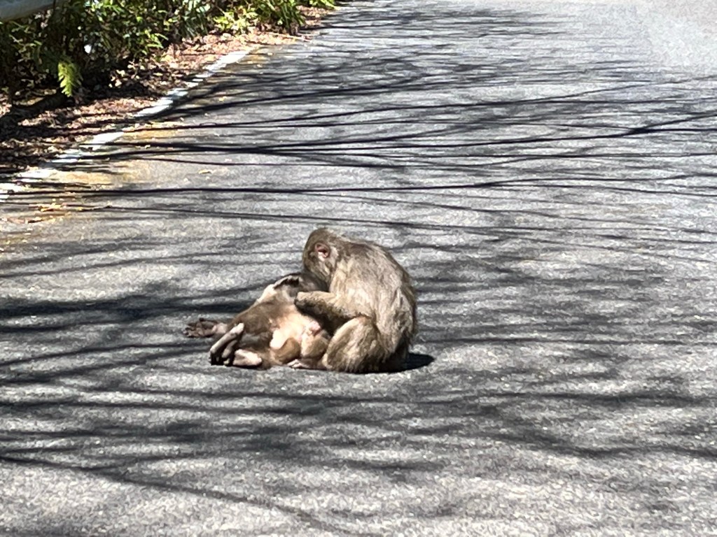 Weiter ging es auf der sehr engen Strasse durch sen Nationalpark mit Affen und Rehen auf der Strasse.