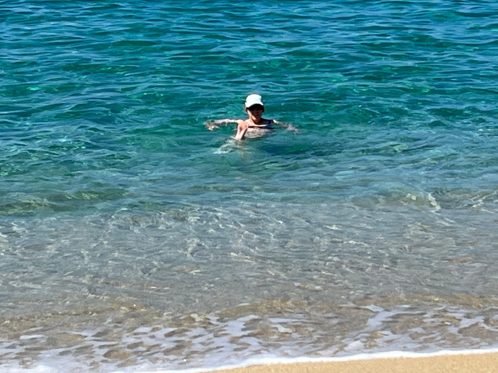 Jetzt sind wir am Strand und Orsi wollte unbedingt das Wasser ausprobieren.