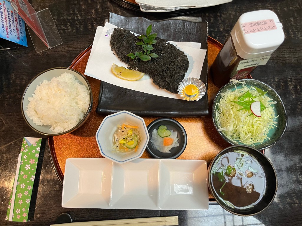 Zeit zurück in die Stadt zu fahren und was zu essen. Heute das regionale Kurobuta Schwein mit schwarzer Panier. Zart und gut wars.