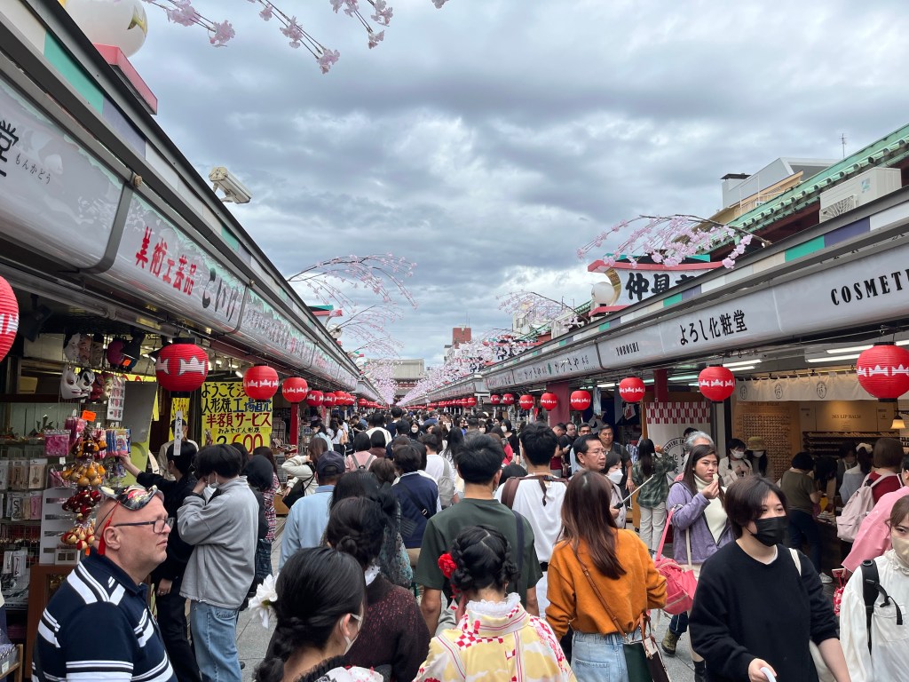 Weiter in Asakusa zur Touristenmeile. Jetzt sind schon ziemlich viele da.