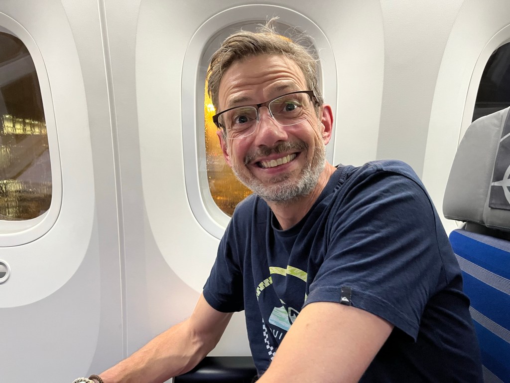 Leider war am Flughafen alles geschlossen was wir gerne genutzt hätten. Lounge mit Dusche, Restaurants etc. Also Sandwiches vom Supermarkt und leider keine Dusche. Jetzt sitzen wir bequem im Flieger und warten auf den Start.
