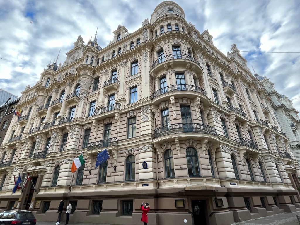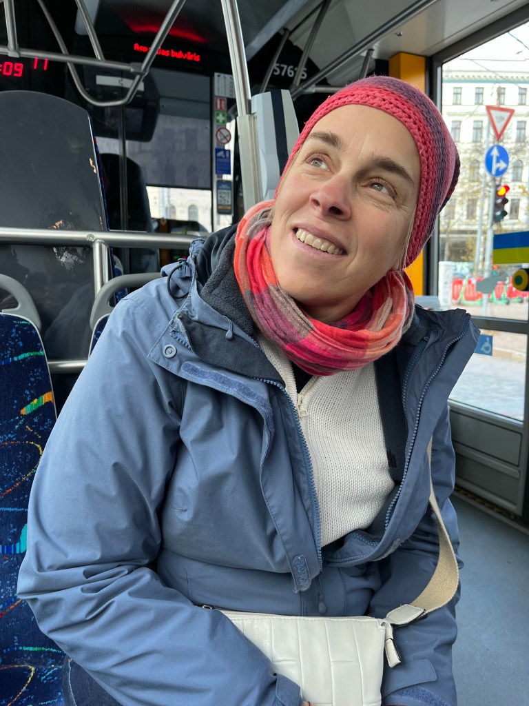 Wir fahren mit der Strassenbahn in Richtung des Jugendstilviertels.