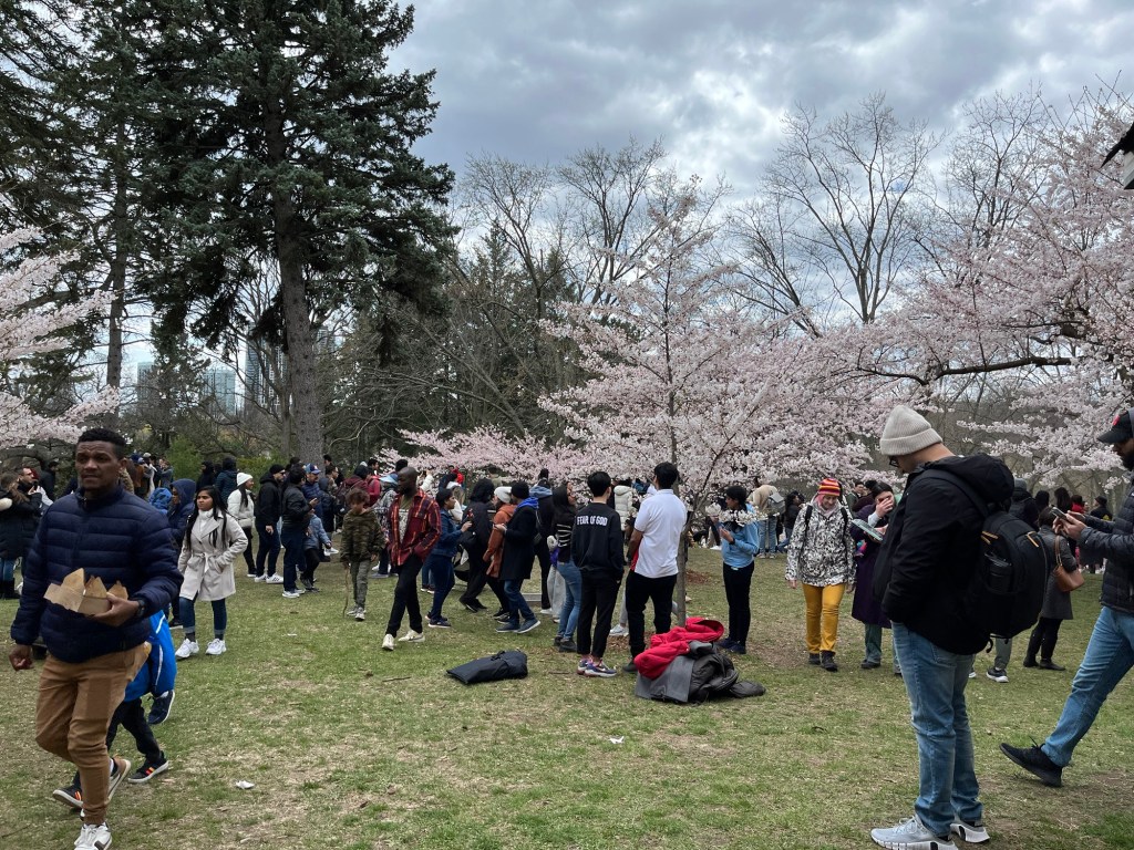 Die Aufregung um die Kirschblüte im Park ist ganz schön groß. Tausende bewundern es.