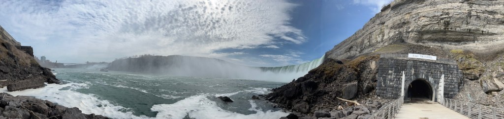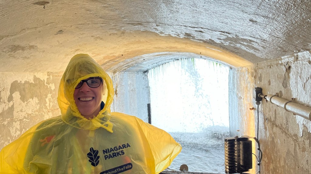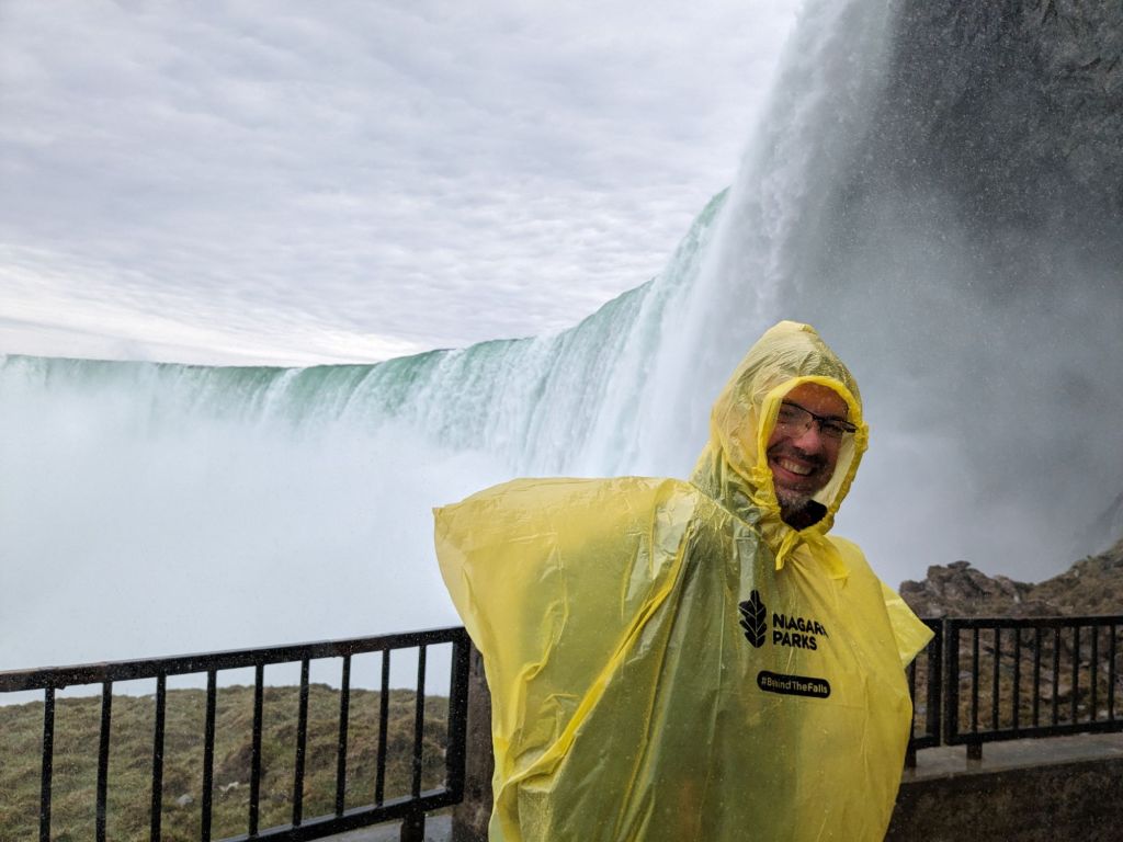 Nach kurzer Pause mit Kaffee und Sandwich werden wir jetzt die Journey behind the Falls machen. Mal sehen wie das wird.