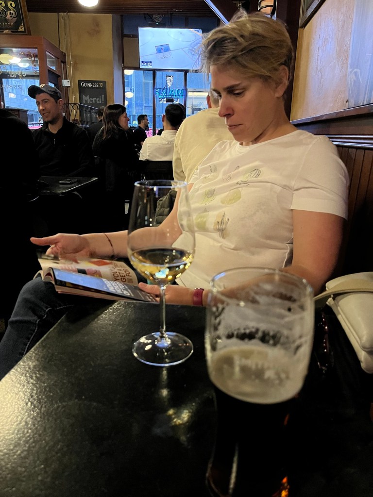 Haben uns im Hotel eingerichtet und sind dann noch auf Drinks vor dem Abendessen. Es ist recht frisch draussen, eher spätwinterlich als Frühling.
