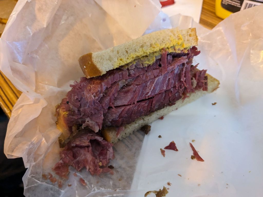 Ich muss leider feststellen, dass das Sandwich in Toronto im St Lawrence Market besser war als hier. Das ist enttäuschend weil angeblich dieser Schwartz fantastisch ist. Aber Fleisch war einfach nicht gut gewürzt, hat etwas fad geschmeckt.