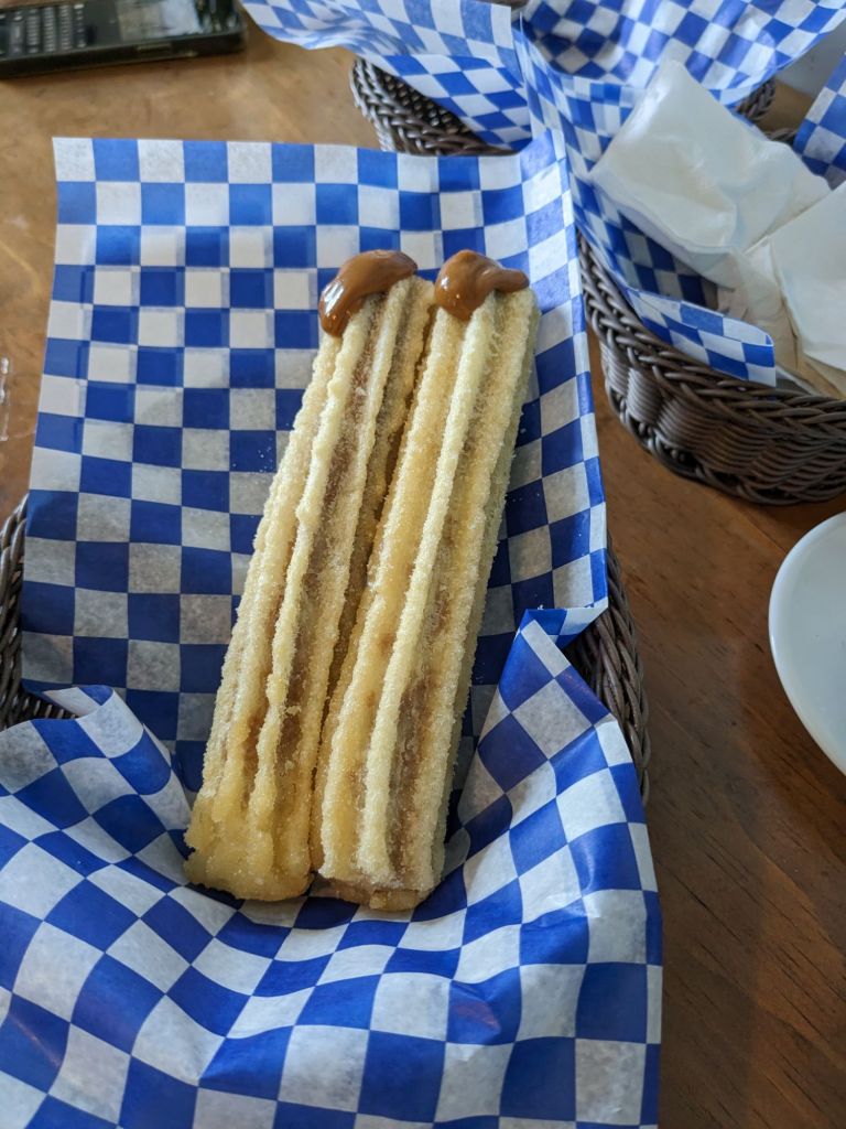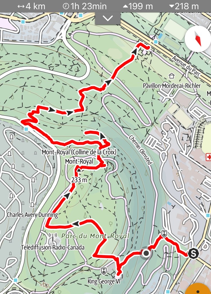 Wir haben den Mount Royal (nicht ohne Drama, weil ich den zuerst ausgewählten Weg nach unten wegen zu unwegsamem Gelände abgelehnt hab… [Orsi]) überschritten und sind danach auf Empanadas und Churros in ein kleines argentinisches Lokal. War gut.