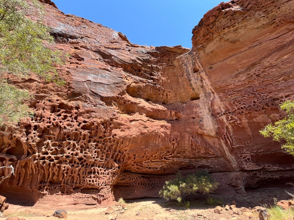 Zurück beim Auto gabs dann Sandwiches zur Stärkung und dann wollten wir noch zur Honeycomb Gorge und sind zu Fuß los. Halbwegs haben wir ungedreht und sind dann mit dem Auto hin weil etwas weit und heiß.