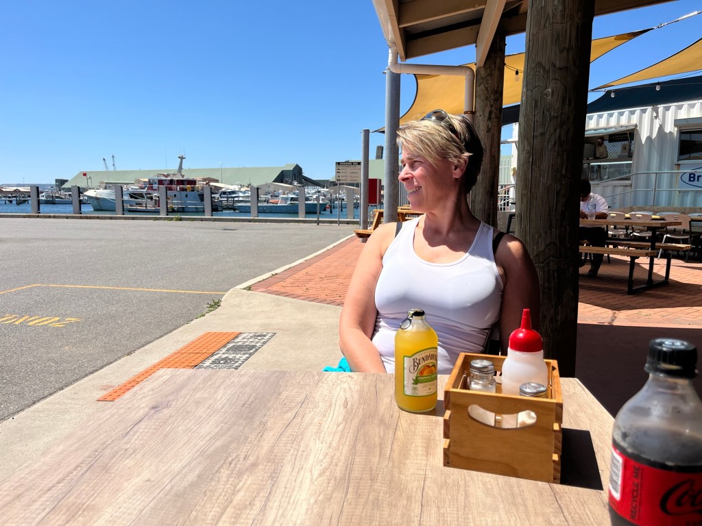 Dann weiter nach Geraldton, wo wir jetzt am Hafen ein Mittagessen haben. Der Verkehr ist mittlerweile ziemlich stark geworden, sehr ungewöhnlich dür Australien.