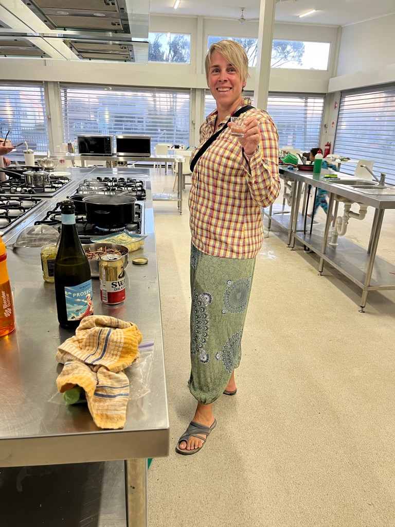 Und da wir noch winiges an Lebensmittel haben word heute in der Camp Kitchen gekocht und der Prosecco getrunken.