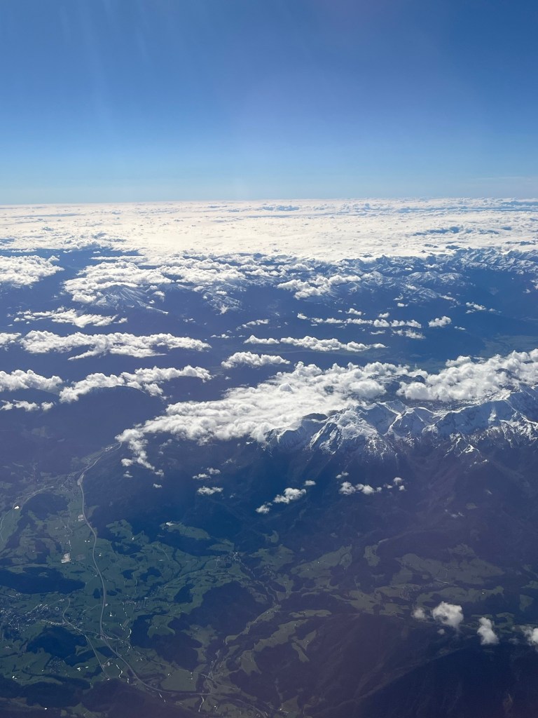 Nicht mehr weit. Noch ein Flug trennt uns von Wien. Bald geschafft.