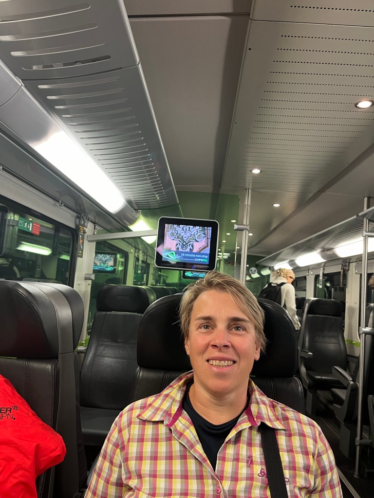 Gepäck ist lange nicht gekommen und jetzt sitzen wir im letzten Transportmittel, dem CAT nach Wien Mitte.