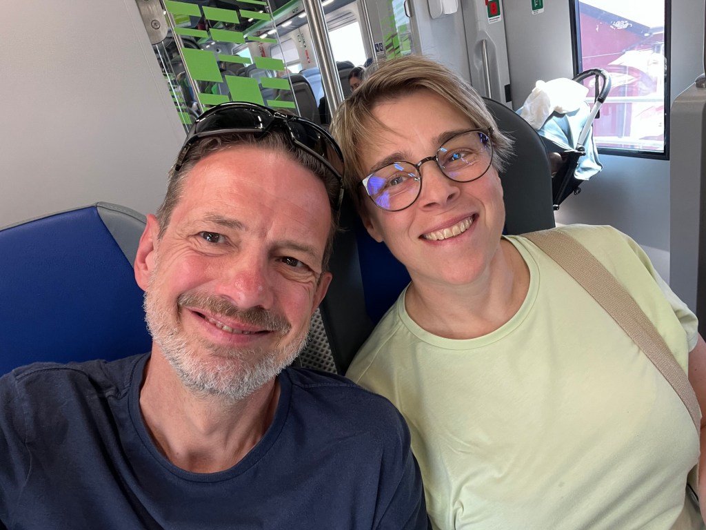 Alles einpacken und auf zum Bahnhof mit Kaffeestopp am Weg.