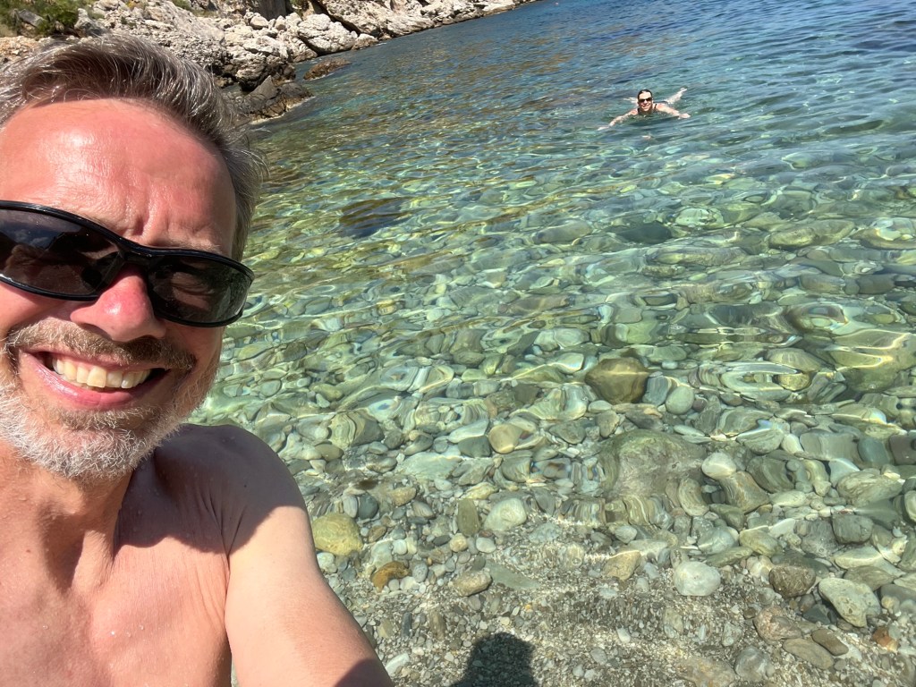 Im gesmanten simd wir heute ca. 8km und 400 HM gegangen und waren zweimal schwimmen. Ich auch, offensichtlich warm genug für ein Weichei.