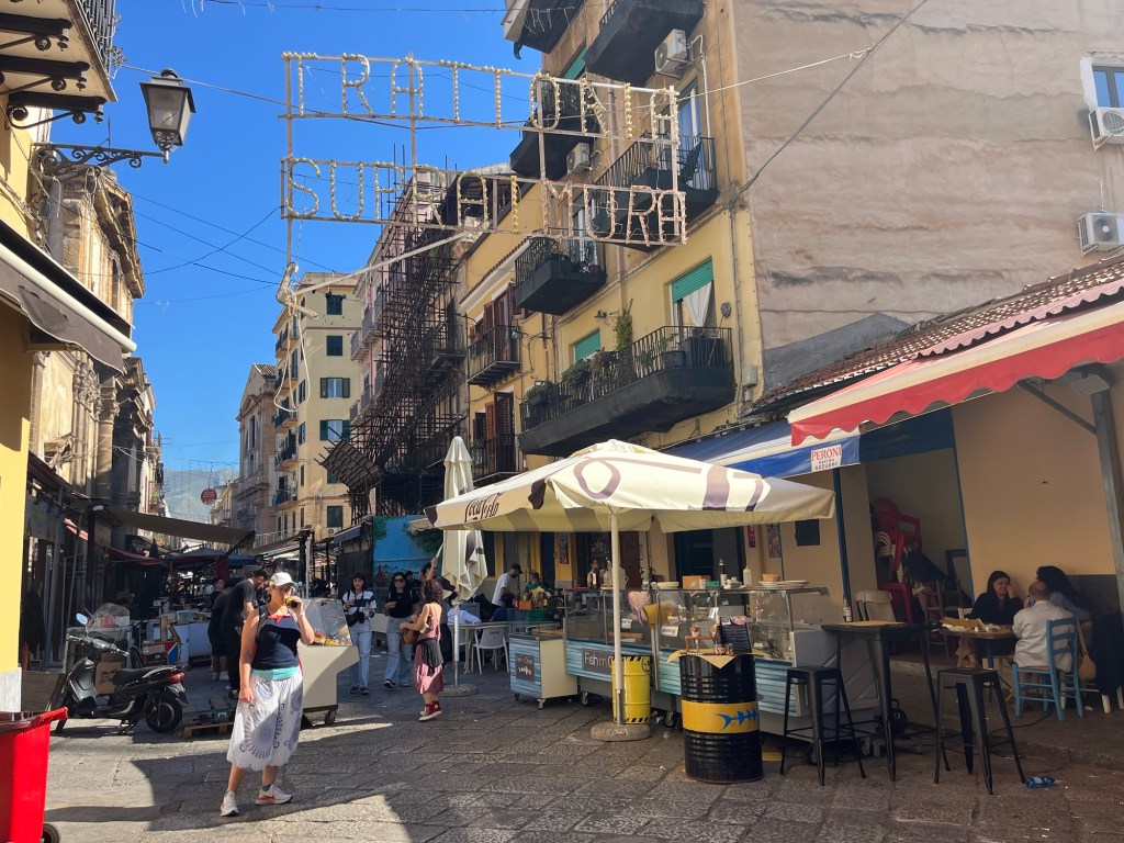 Sind nochmals raus um was zu kaufen. Da ist was los in Palermo. Sehr viele Leute auf der Straße. Auch bissi verwegener als Catania.