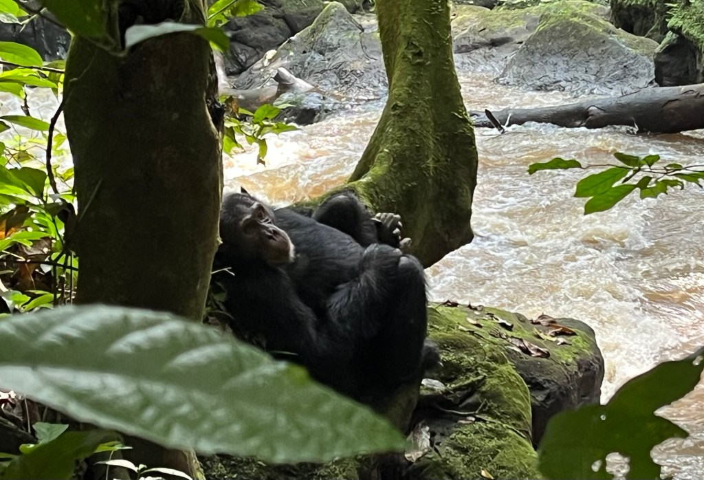 Danach sind wir zur Station und sind dann los marschiert. Angeblich sollen die Schimpansen nicht in der Schlucht sondern in der Savanne sein. Das war halb korrekt, tatsächlich war einer draußen aber die Gruppe haben wir dann doch in der Schlucht getroffen.