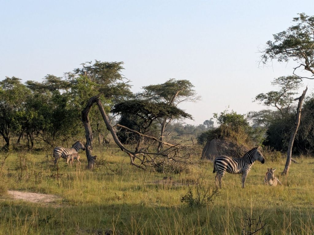 Wir sind ca 5 km in den Park gefahren und haben dann den Marsch begonnen. Zuerst sind wir einige. Zebras begegnet, die gerade am grasen waren.