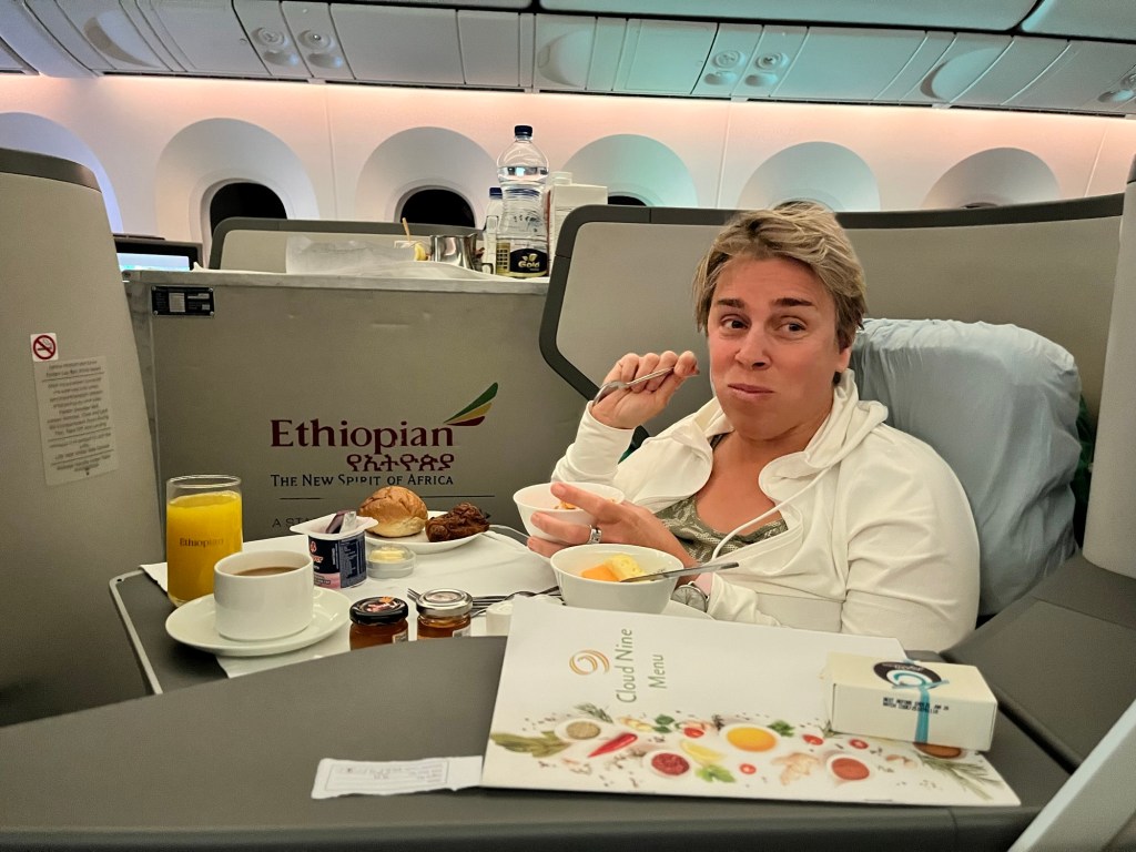 Jetzt warten wir in der Lounge auf unseren Flug, der uns in ca 2 Stunden nach Addis Abeba bringt.