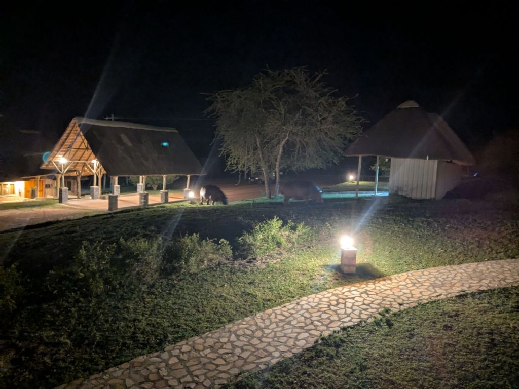 Heite Nacht waren die Hippos zu Besuch cor unserer Hütte.