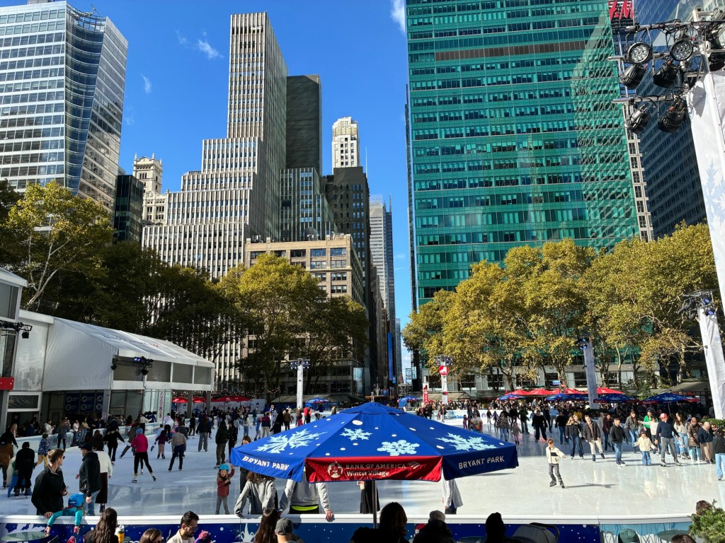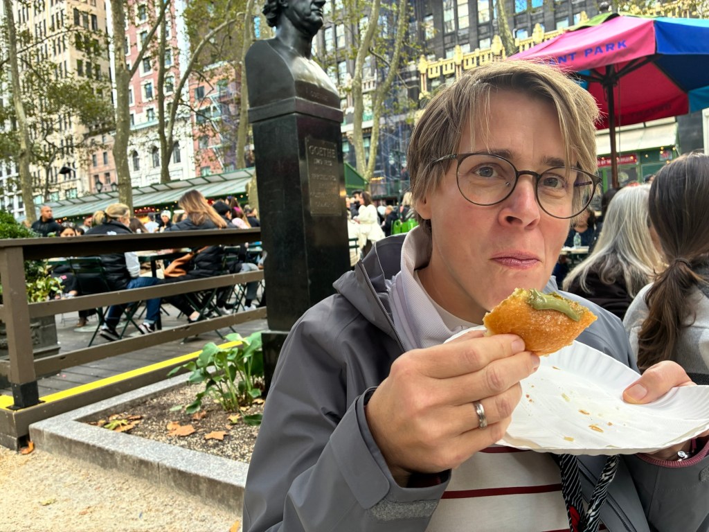 Ein Bagel zu Mittag – bissi mühsam weil extrem viele Leute und dann Bagel draußen auf der Straße im Stehen. Und dann zurück in die Nähe des Hotels zum Bryant Park Winter Village für eine Nachspeise.
