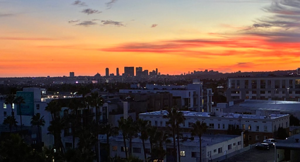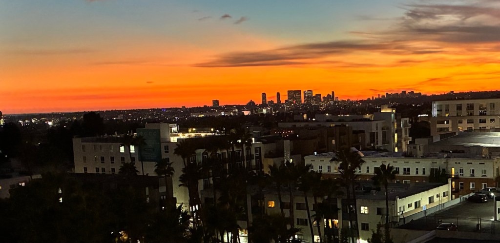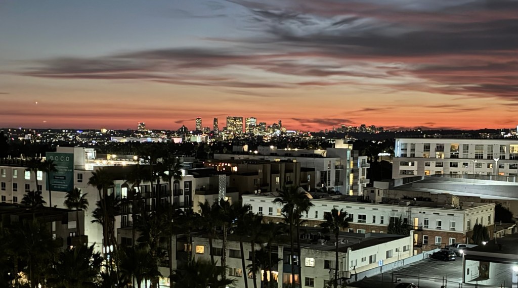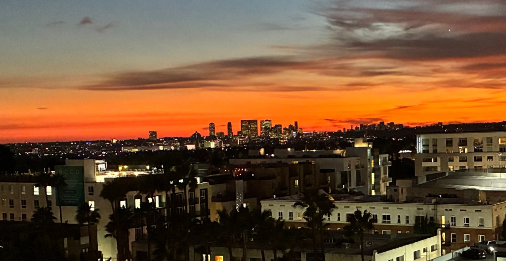 Jetzt haben wir uns noch ein paar Drinks an der Pool Bar gegönnt und jetzt können wir dem Sonnenuntergang in Santa Monica beobachten. Schön.