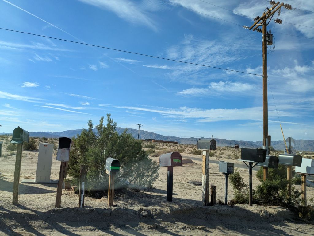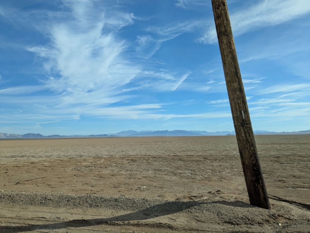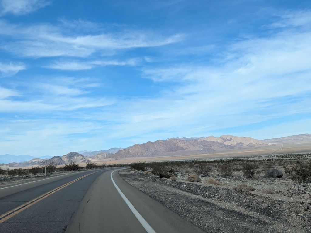 Heute sind wir ca 420km von 29 Palms nach Detah Valley gefahren. Durch Wüste und sehr einsam – ganz wenig Verkehr. Unterwegs haben wir in Baker noch einen Bio Break gemacht und Kaffee gekauft.