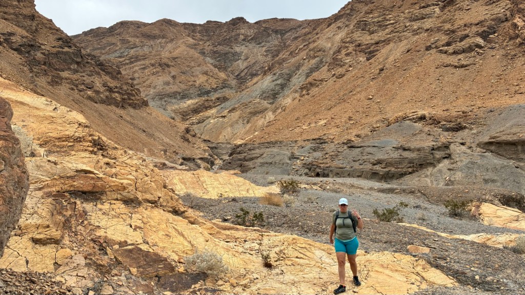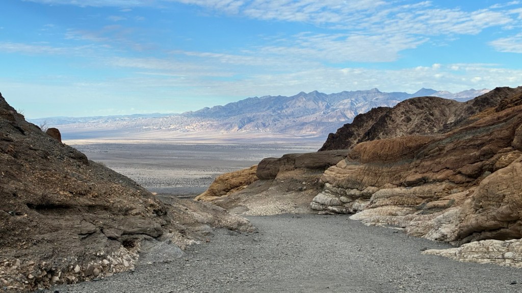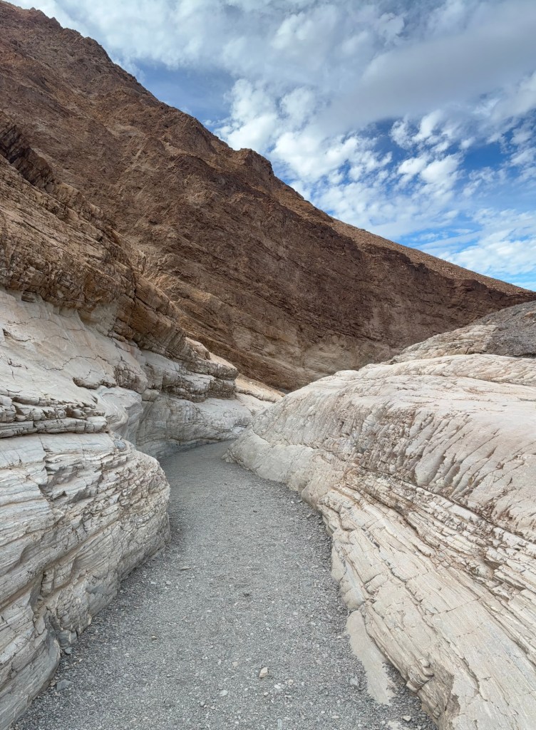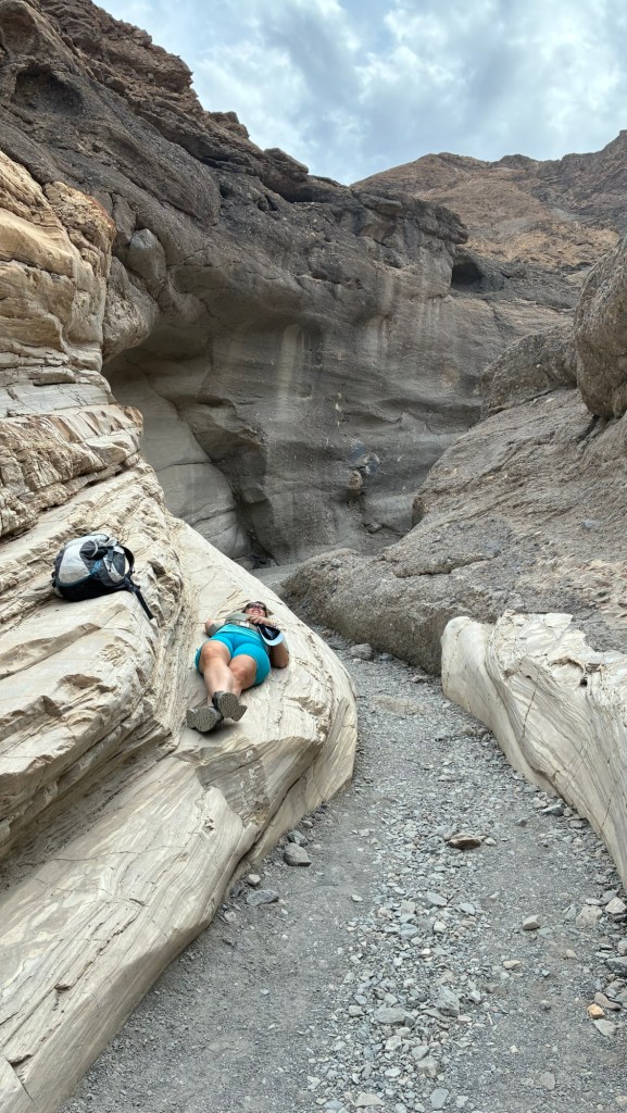 Danach ging’s weiter zum Mosaic Canyon. 6,5km hin und retour und ca 320 Hm. (Für uns war’s etwas mehr, weil wir es uns am Anfang noch etwas erschwert haben, indem wir einen extra Berg dazwischen bestiegen haben 😉)