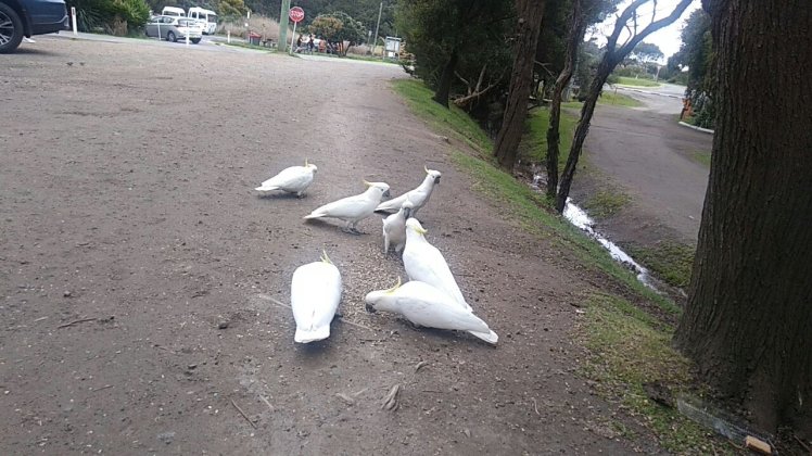 Ja és főzés közben pont egy kakadu-raj kereste a fejünk felett az alvóhelyüket, hát nem pont a kezemre szart az egyik??? Még szerencse, hogy nem a kajába!! 💩😱