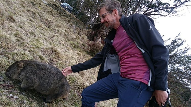 Szerencsénk volt, itt se esett. Az úton Cradle Mountain felé már egy kicsit cseperészett. Kb 600 kanyar után megérkeztünk Cradle Mountainba. Itt megint sok turista. Először lecsekkoltuk a holnapi túrához az infókat meg a parkba a belépőt a visitor centerben, majd megnéztük hol lesz a ma esti Tasmanian Devil (tazmán ördög) túránk, illetve a holnapi vacsora színterét is a Lodge-ban, majd vissza a mi szállásunkhoz becsekkolni. Mi a Wilderness Village-ben vagyunk, egy kis házikónk van, nagyon helyes.