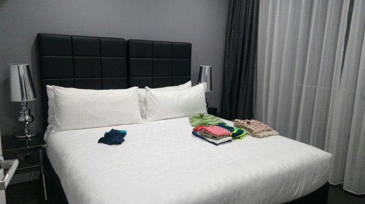 Meg is érkeztünk Sydney-be, már a metrón/vonaton ülünk befelé a városba. Szerencsére pont egy állomásnál van a szállás, nem kell sokat gyalogolni a csomaggal.