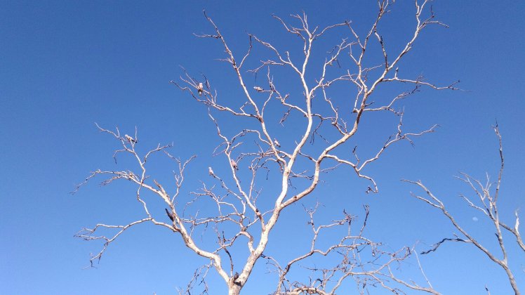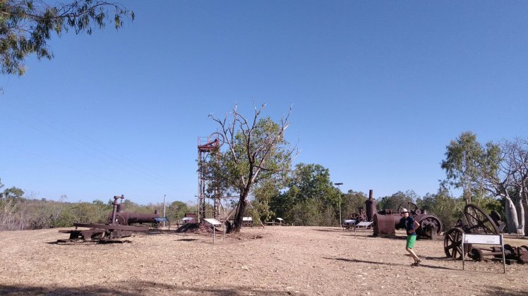 150km után álltunk meg először egy kis sétára – Gunbarra forest walk – ahol pár madarat láttunk és ismét jó meleg volt. Most ugye száraz évszak van (The Dry – bár az aboriginel-ek itt 6 évszakot különböztetnek meg és a mostani kiválóan alkalmas libavadászatra…), így aztán ennek megfelelően porzik minden és a növényzet is rendesen ki van égve. Most is láttunk még sok füstöt messzebbről.