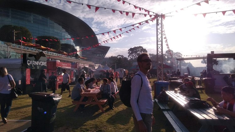 Vissza villamossal a Federation Square-re, public viewing. Az első negyed végéig néztük ott, de aztán hazajöttünk és most itt nézzük a meccset meg lazítunk kicsit. Kicsit béna az időjárás ma, hol csepereg, hol szeles, akkor hideg, aztán előbújik a nap, akkor meg meleg. Azaz tavasz 🙂