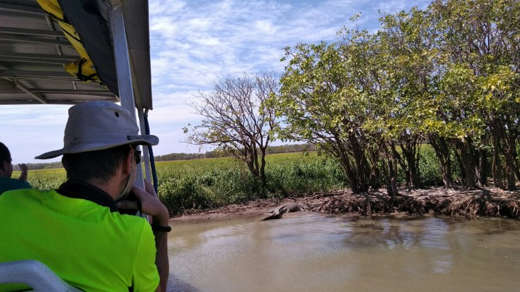 Az utolsó érdekesség ma pedig annak a folyón átvivő útnak a megtekintése (mi nem hajtottunk át rajta, külön engedély is kellene), amit már szintén ismerünk egy dokumentumfilmből, itt jobbról-balról kacsintgatnak a sósvízi krokodilok, miközben te megpróbálsz a folyón áthajtani. Láttunk is krokikat 🙂