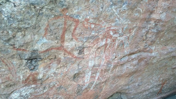 Következő pedig egy aboriginal szent hely, sziklarajzokkal. Érdekes, hogy bárhol járunk a világon, egymástól függetlenül sok különböző kultúra hasonlóképpen fejezte ki magát és úgy érezték, hogy sziklarajzban kell megörökíteni életük különböző jeleneteit.