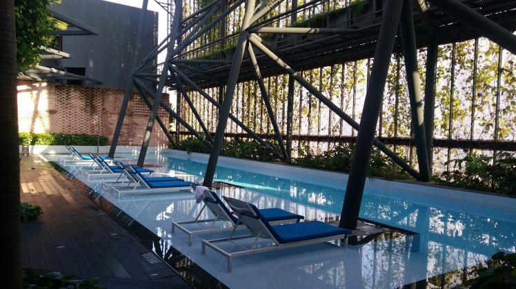 A szállodánk szuper, rögtön itt is ragadtunk a poolnál ami a 21-ik emeleten van. Cocktail es canapék kiséretében készülünk a Chinatown esti sétára.
