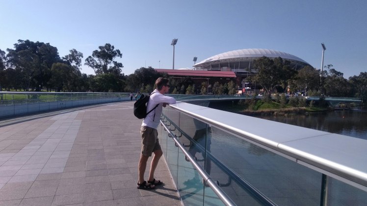 Megnéztük a parádét, rengeteg ember van itt, mindenki az egész családdal, nagypapától a legkisebb unokáig, beöltözve vagy Adelaide Crows vagy Melbourne Tigers mezbe. Láttuk az összes játékost is, mind Toyota hilux pickupok hátulján ültek.