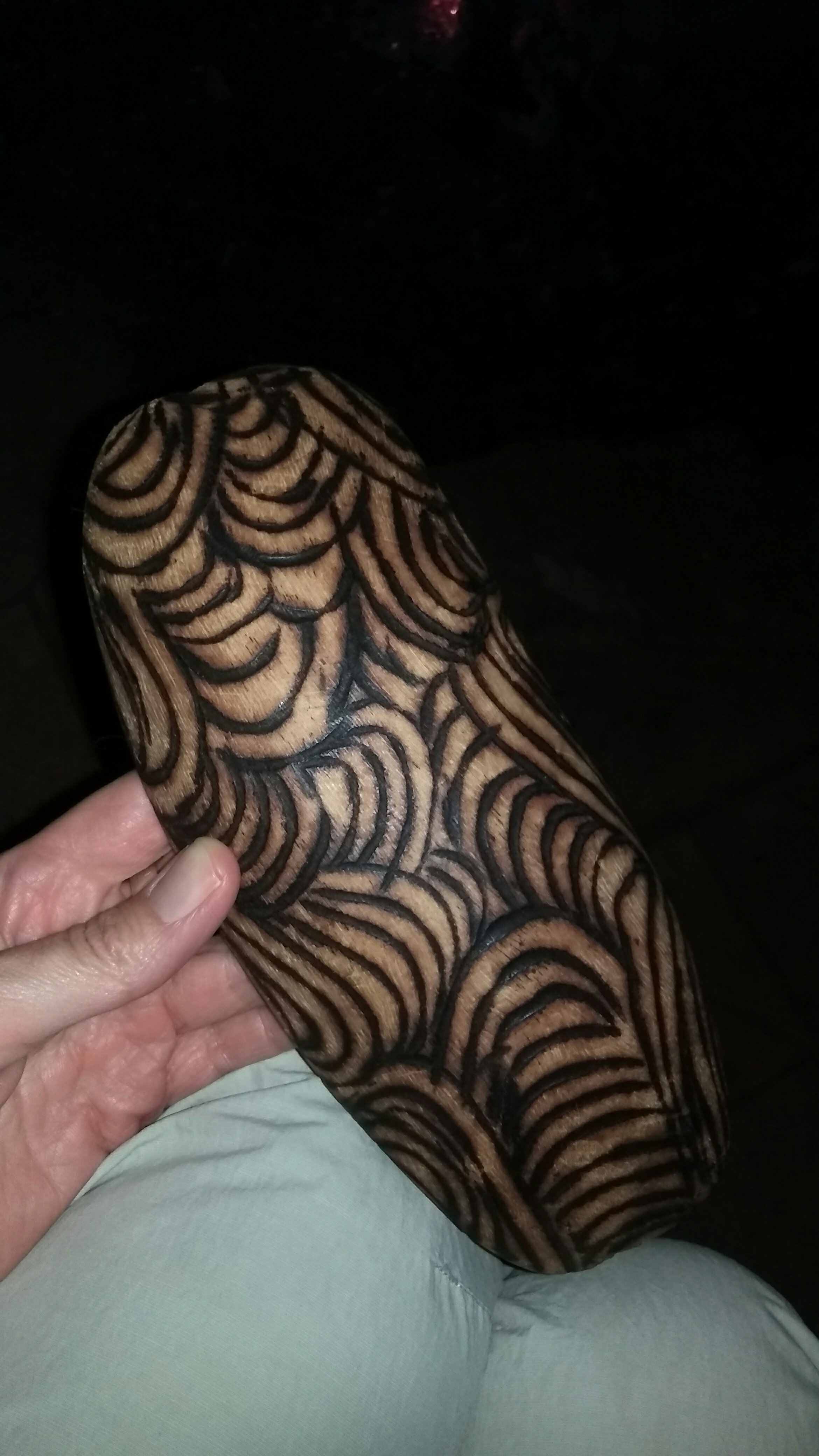 A The Wall nagyon érdekes volt és fantasztikus munka. Még nincs teljesen kész és jó pár figurát különböző stádiumban hagyott a művész, így lehet látni micsoda sok munka is ez. Nagydarab egész fából farag ki mindent, ebből a fantasztikusan illatozó Huon Pine-ból. Képeket nem lehetett csinálni, ezen a linken lehet utánanézni miről is van szó.