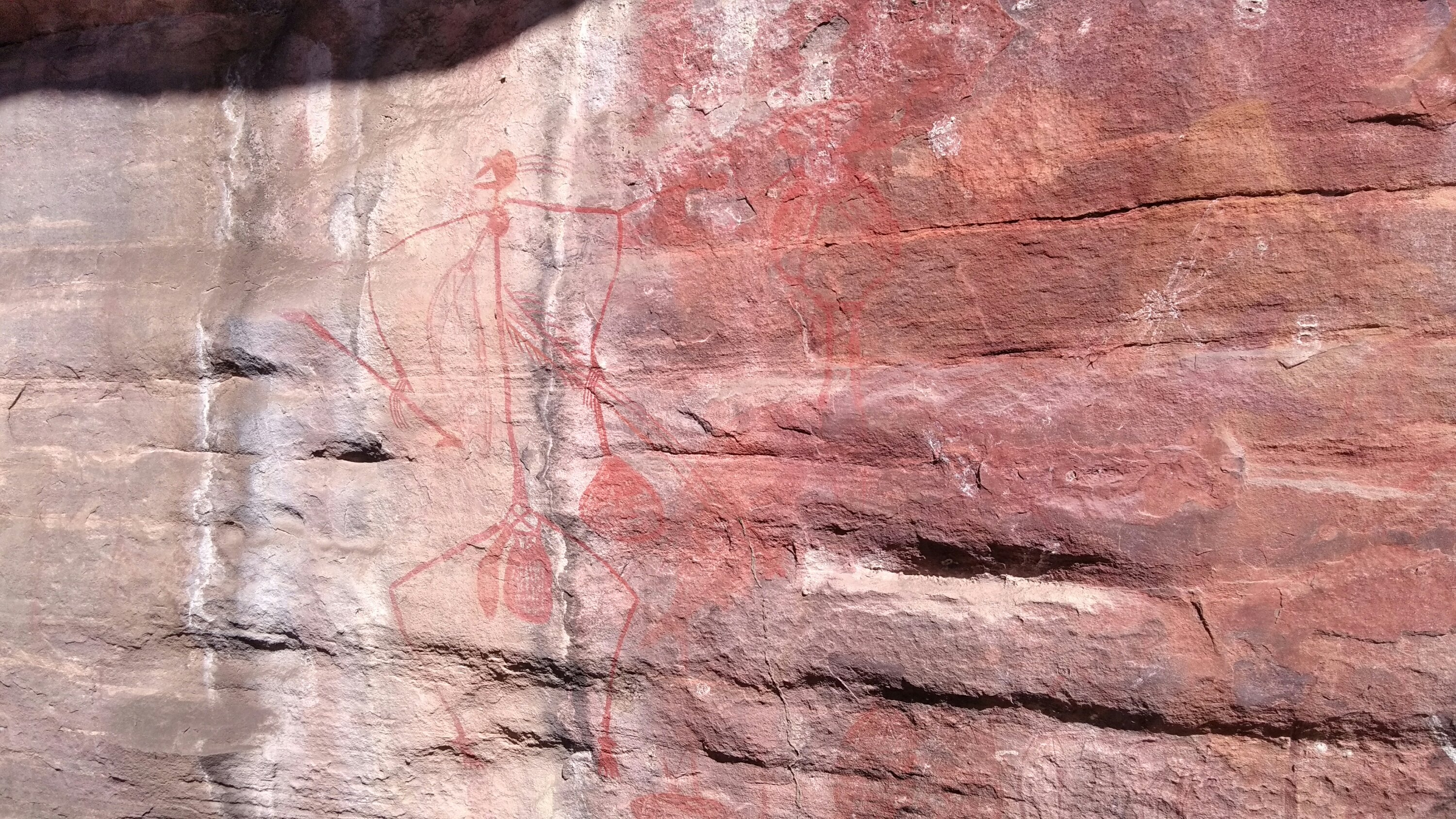Következő pedig egy aboriginal szent hely, sziklarajzokkal. Érdekes, hogy bárhol járunk a világon, egymástól függetlenül sok különböző kultúra hasonlóképpen fejezte ki magát és úgy érezték, hogy sziklarajzban kell megörökíteni életük különböző jeleneteit.
