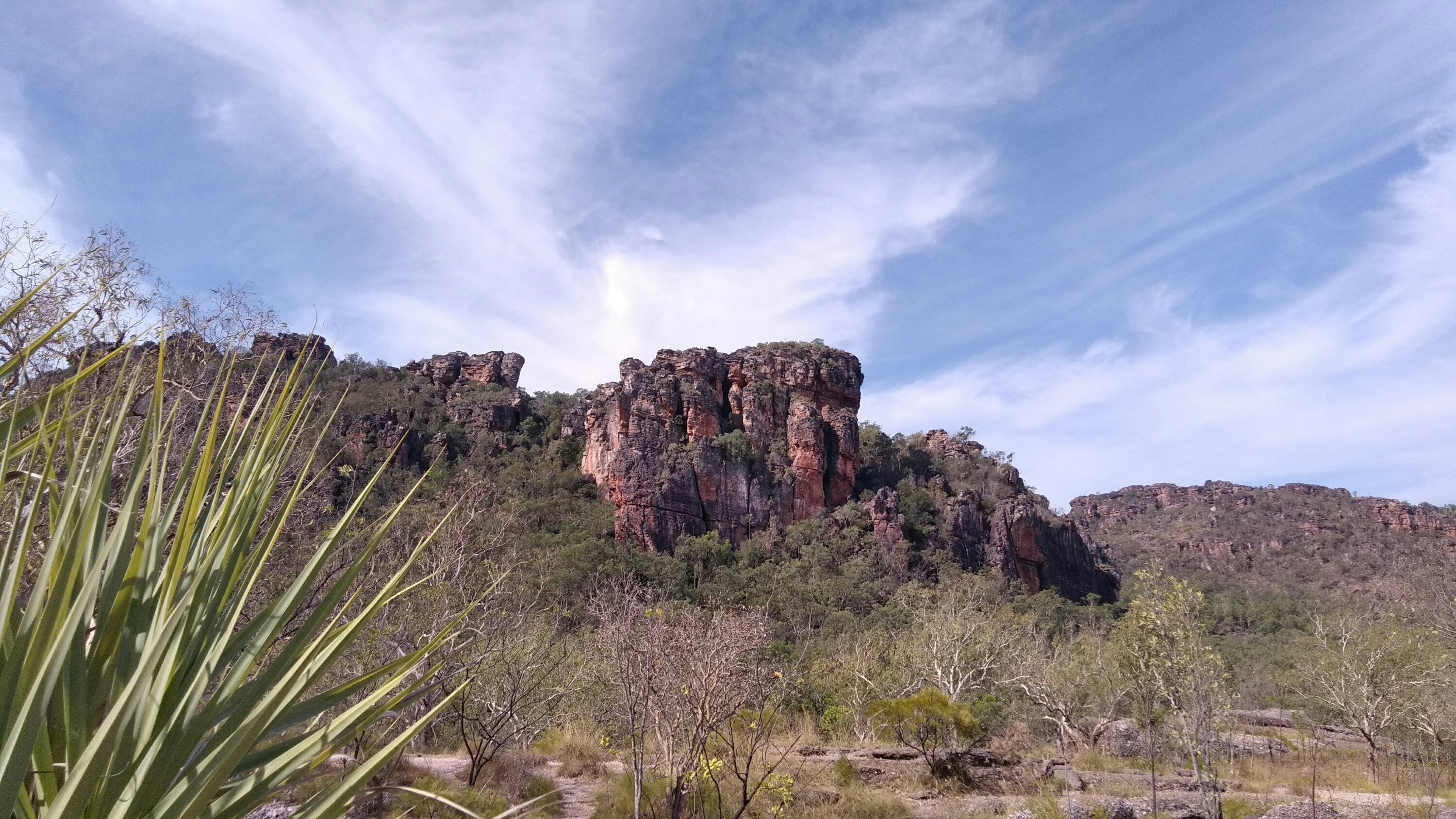 150km után álltunk meg először egy kis sétára – Gunbarra forest walk – ahol pár madarat láttunk és ismét jó meleg volt. Most ugye száraz évszak van (The Dry – bár az aboriginel-ek itt 6 évszakot különböztetnek meg és a mostani kiválóan alkalmas libavadászatra…), így aztán ennek megfelelően porzik minden és a növényzet is rendesen ki van égve. Most is láttunk még sok füstöt messzebbről.