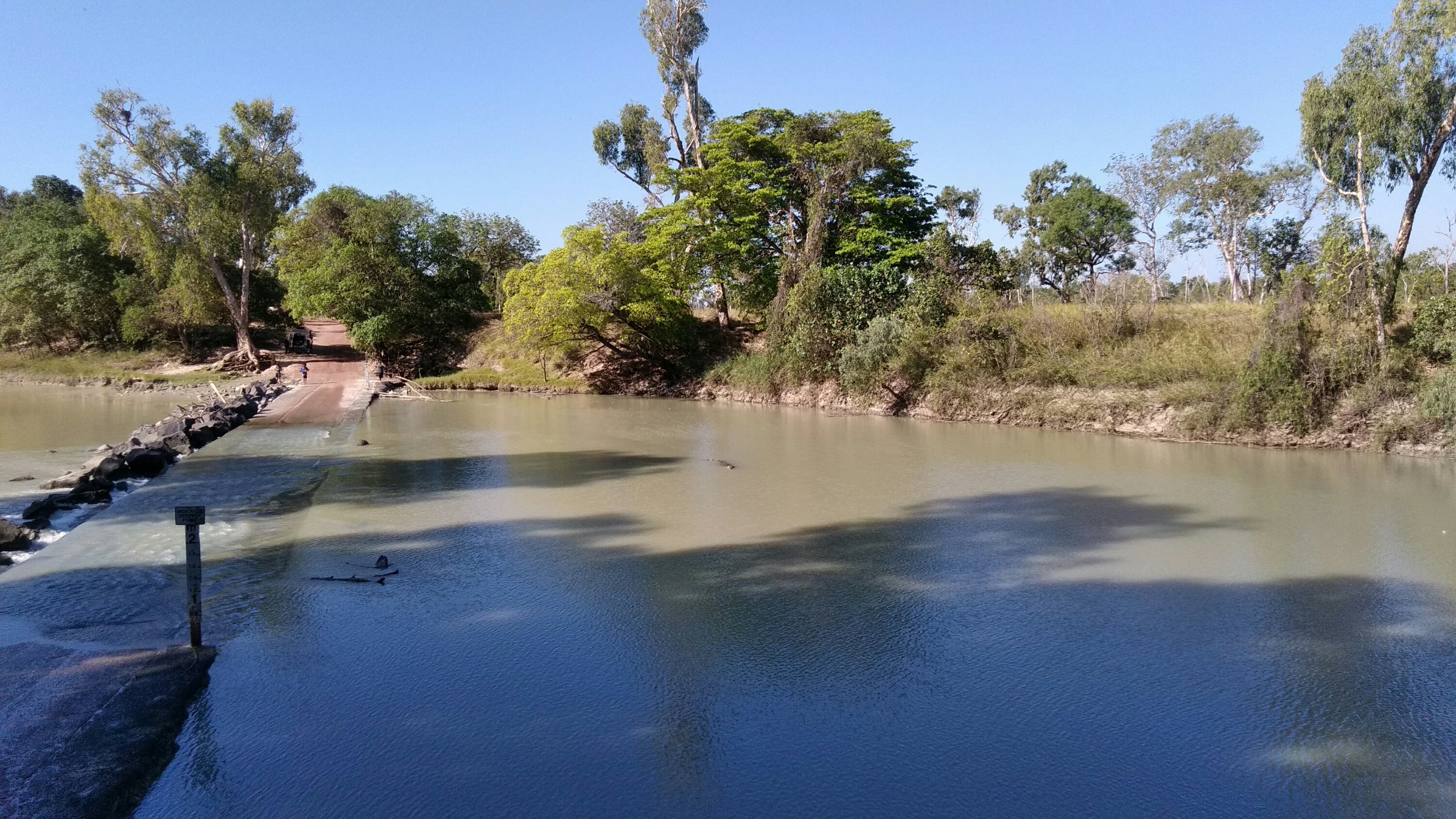 Az utolsó érdekesség ma pedig annak a folyón átvivő útnak a megtekintése (mi nem hajtottunk át rajta, külön engedély is kellene), amit már szintén ismerünk egy dokumentumfilmből, itt jobbról-balról kacsintgatnak a sósvízi krokodilok, miközben te megpróbálsz a folyón áthajtani. Láttunk is krokikat 🙂