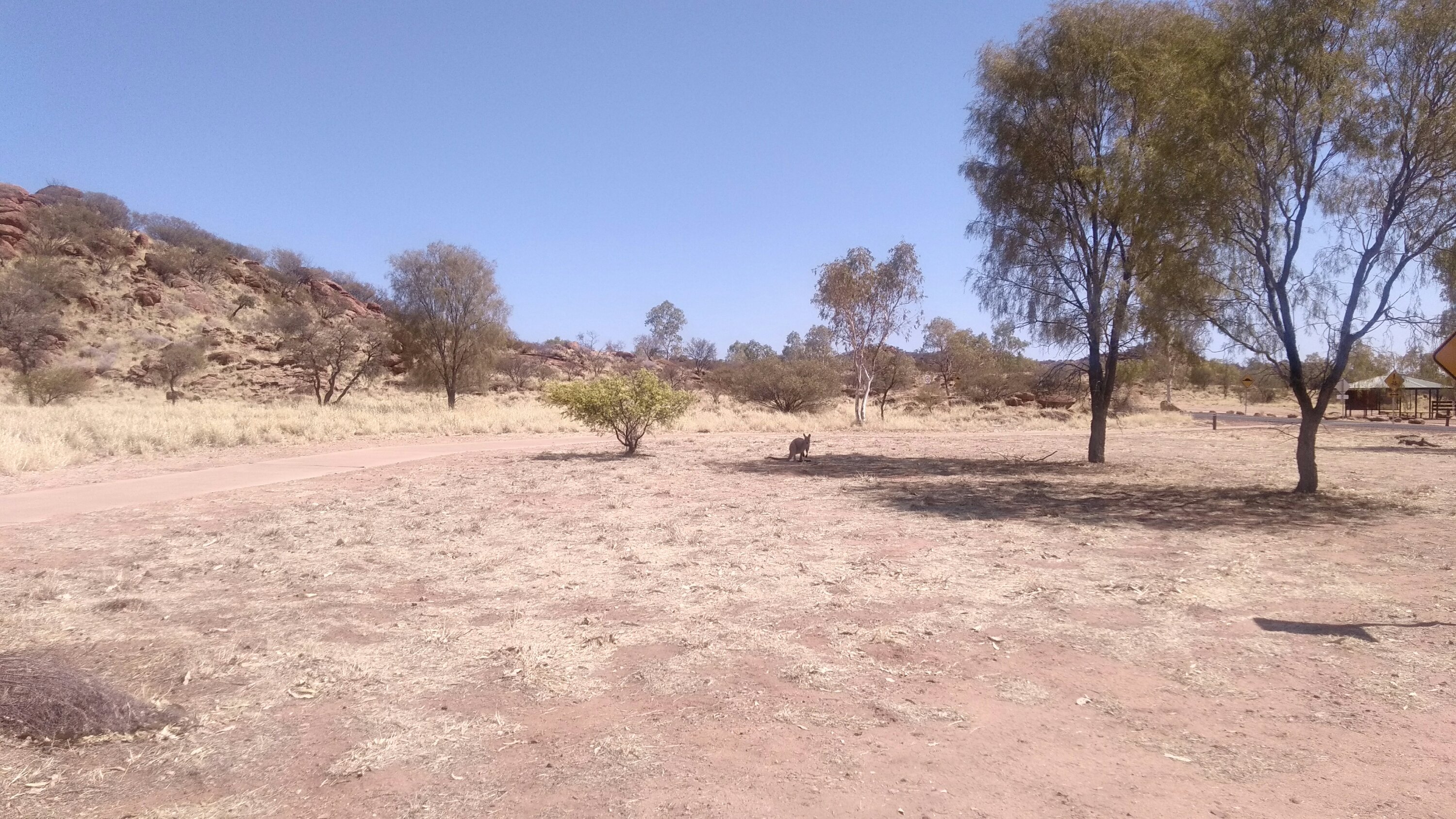 Katherine előtt még volt egy art shop, vettünk egy képet meg egy boomerangot, gondoljuk hogy amint közeledünk Uluruhoz, ezek a dolgok egyre drágábbak lesznek. Itt is volt jó pár wallaby, meg is simogattunk egyet, szigorúan csak a füle mögött.