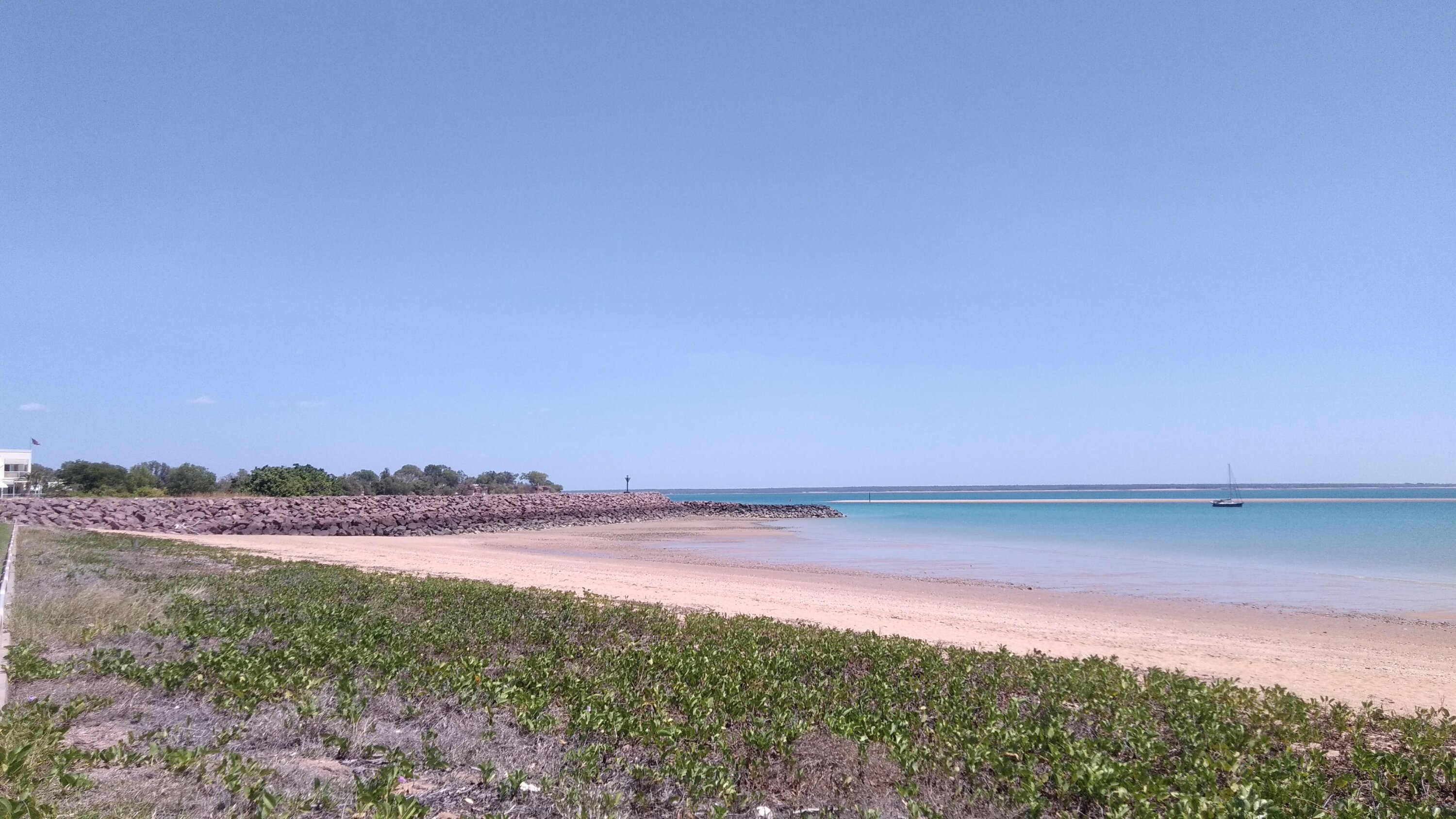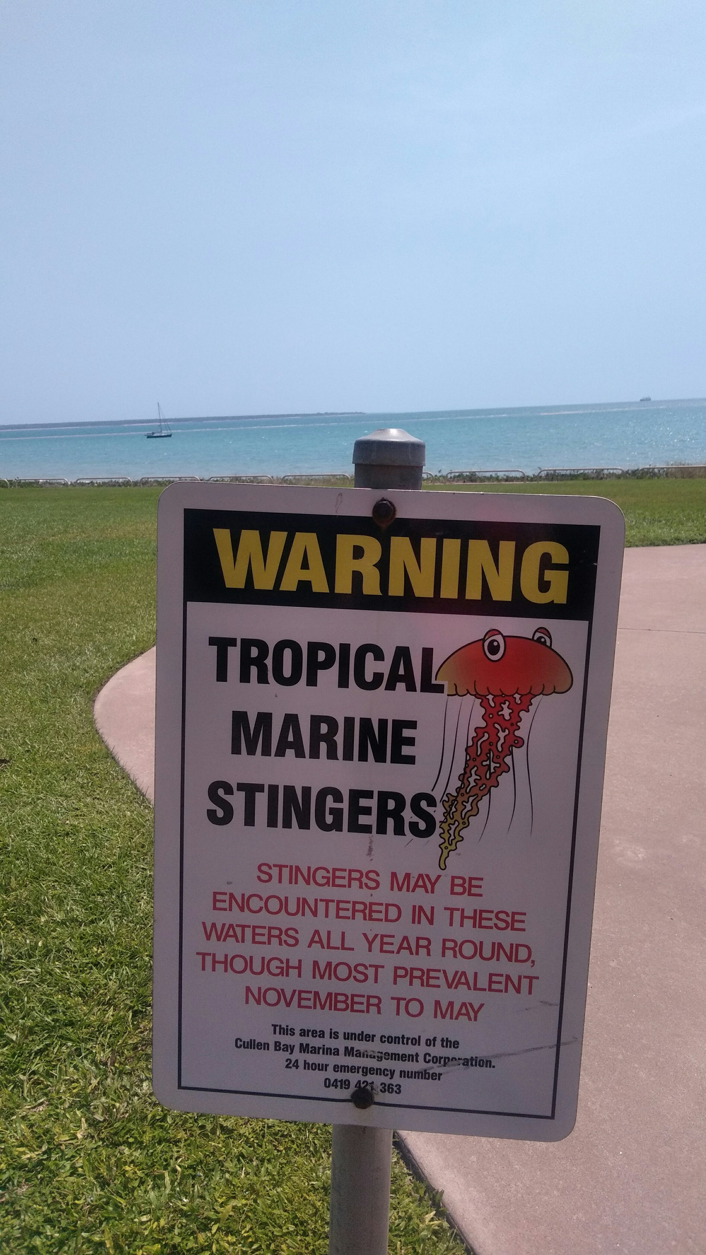 Egy kávé után visszasétáltunk a buszokhoz és kibuszoztunk Cullen Bay-be ahol egy gyönyörű strand van – persze itt se látni senkit a vízben, nem véletlenül.