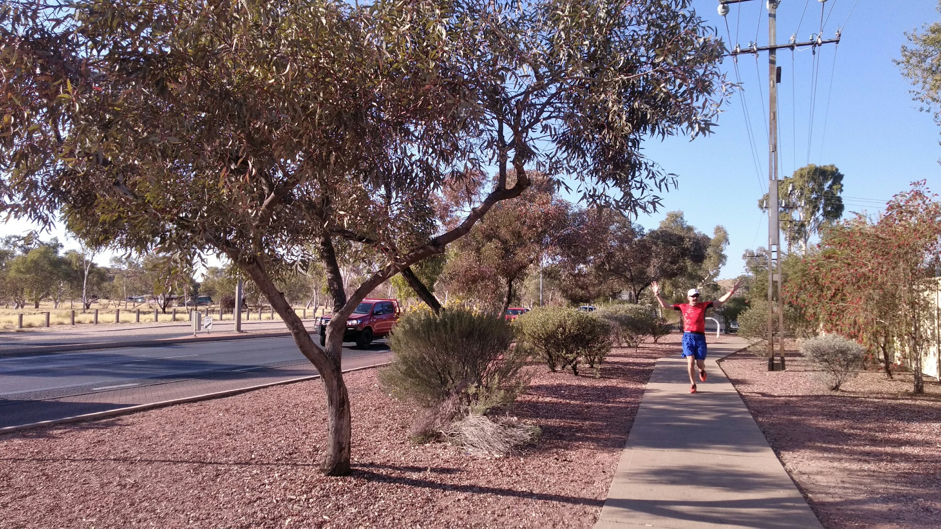 Az úton ugyanaz, mint tegnap. Kétszer tankoltunk, jó drágán. Megérkeztünk Alice Springsbe – 388km. Felvettem a bankkártyát és most megengedünk magunknak egy ebédet egy helyi kávézóban.